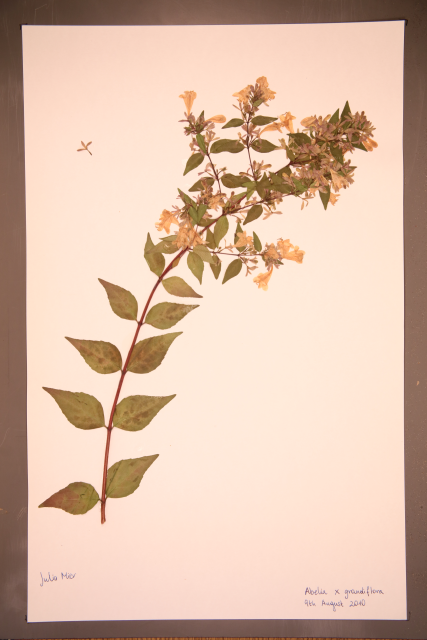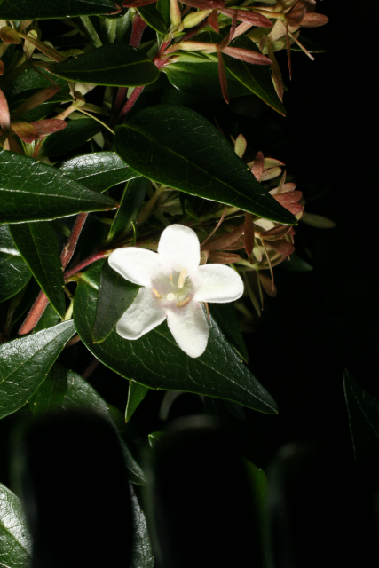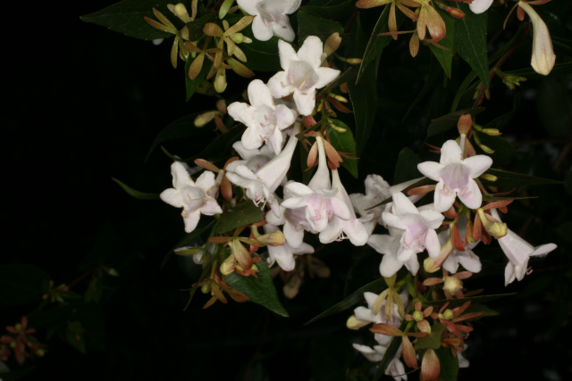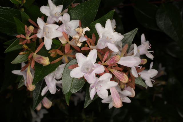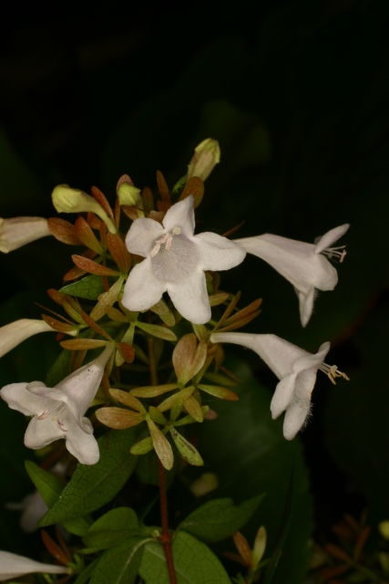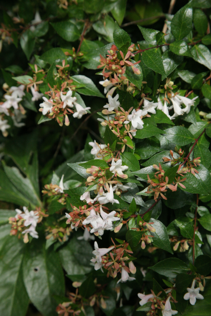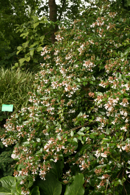 A hybrid. Raised by crossing Abelia chinensis with Abelia uniflora. Both from China.