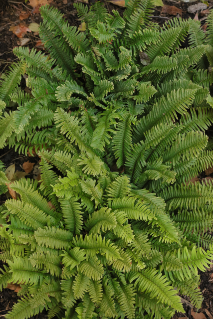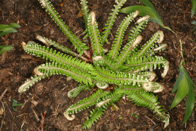 hybridparent of: Dryopteridaceae Polystichum × lesliei Rumsey & Acock Fern Gaz. 16(5): 247 (2001 publ. 2002).