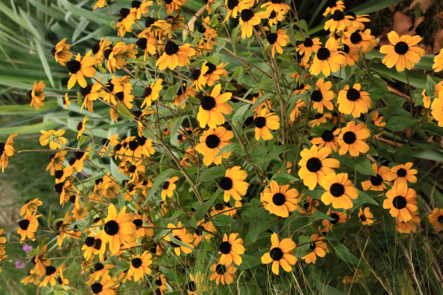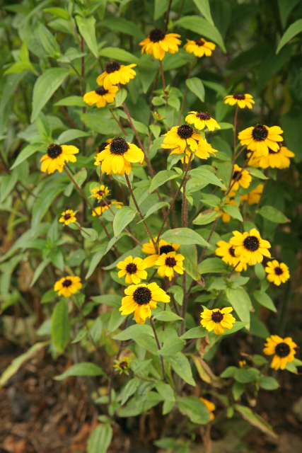 This plant from the Asteraceae family is native to the grasslands of Canada. In the Medicinal Garden it is grown amongst grasses and other American prairie plants, where it bears a profusion of golden, shuttlecock-like fl owers on stiff stems in late summer. With a yearly mulch of deep well-rotted, horse manure, it is tolerant of partial shade and drought, and is disease-resistant. It can be easily propagated by seed and new plants will often flower in their first year. (Clare Beacham)
