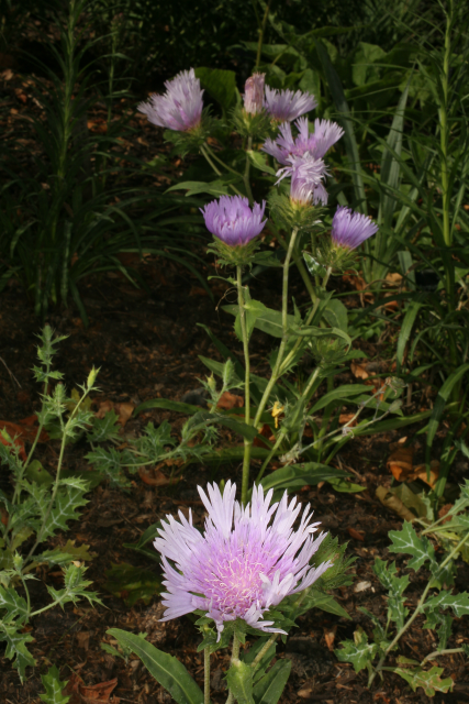 Stokesia laevis Greene Asteraceae. Stoke's Aster, Cornflower Aster. Distribution: South-eastern USA. Named by Charles Louis L’Héritier in 1789 for Dr Jonathan Stokes (1755-1831), a member of the Lunar Society and Linnean Society, botanist and physician.