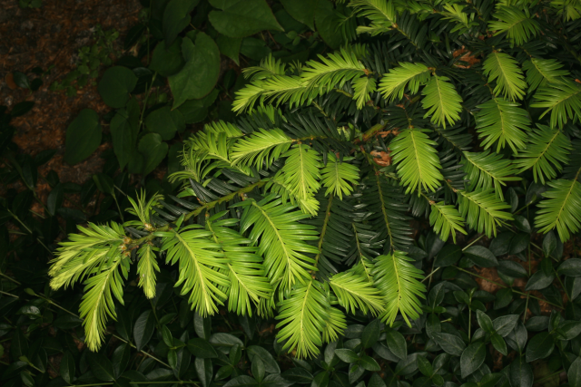 Trees are feminine in Latin, so while Taxus has a masculine ending (-us), its specific name, baccata, agrees with it in gender by having a female ending (-a). In Latin, baccata means 'having fruits with a pulpy texture.'