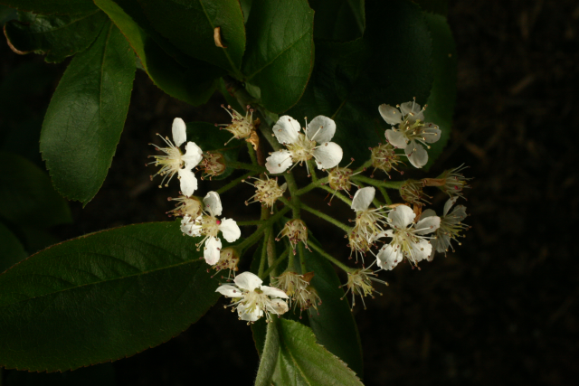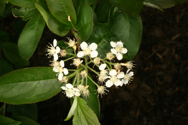 a natural hybrid, A. arbutifolia × A. melanocarpa Syn. = Crataegus prunifolia (Marshall) Baumg., Mespilus prunifolia Marshall (basionym), Photinia floribunda (Lindl.) K. R. Robertson & J. B. Phipps, Pyrus floribunda Lindl.