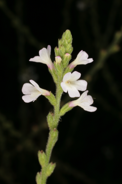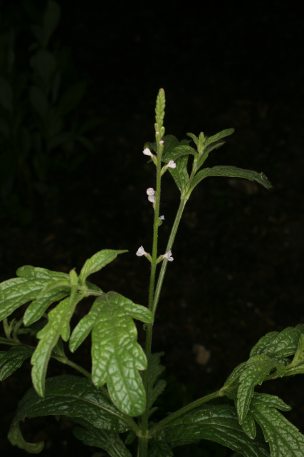 Verbena bonariensis L. Verbenaceae. Purpletop Verbena. Distribution: South America. Verbena is Latin for the shoots of Laurel; bonariensis means 'from Buenos Aires'. Verbena officinalis is licensed for use in Traditional Herbal Medicines in the UK (UK Medicines and Healthcare Products Regulatory Agency (MHRA)) in compounds with other herbs for nasal congestion, mild stress symptoms and sleeplessness.