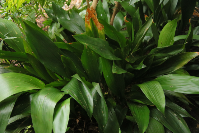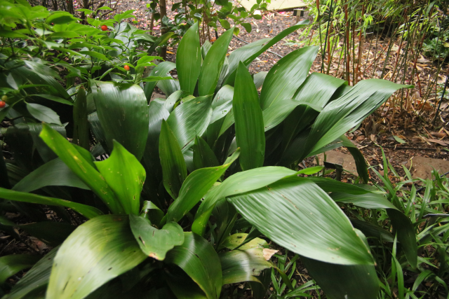 Family:ASPARAGACEAE Genus:Aspidistra Species:elatiorBlume Common names:Common Aspidistra;Cast-Iron-Plant Distribution summary:China Habit:Perennial Hardiness:H5 - Hardy; cold winter Habitat:Understorey and margins of evergreen forest Garden status: Currently grown Garden location:Far East (L) Flowering months:January, February, March Reason for growing:Medicinal