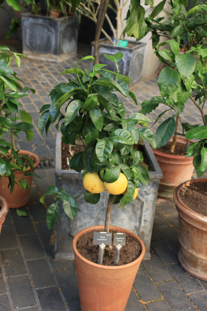 The grapefruit is one of the Groups of cultivated Citrus included under the hybrid name, C. x aurantium (C. maxima [pumelo] x C. reticulata [mandarin]). C. x paradisi (also called a grapefruit) is regarded as a synonym of the grapefruit Group, being a backcross (C. aurantium x C. maxima). Bitter orange/ Sour Orange Group is also included in C. x aurantium (syn C. sinensis). Thanks to John David at the RHS for this information.