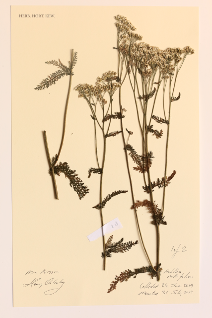 Yarrow or sneezewort, the latter because ground up it made a snuff to induce sneezing. Evergreen, herbaceous perennial. Distribution: Europe, Asia and North America. Dioscorides calls it Achilles’ woundwort, sideritis, writing that the ground-up foliage closes bleeding wounds, relieves inflammation and stops uterine bleeding. Gerard's herbal of 1633 says that put up one’s nose it causes a nosebleed and so stops migraines. Named for the Greek warrior, Achilles, who used this plant for healing wounds – having been taught its properties by his teacher, Chiron the centaur. Millefolium because of the thousands of fronds that make up the leaf, and which, when applied to a bleeding wound, facilitate coagulation by platelets.