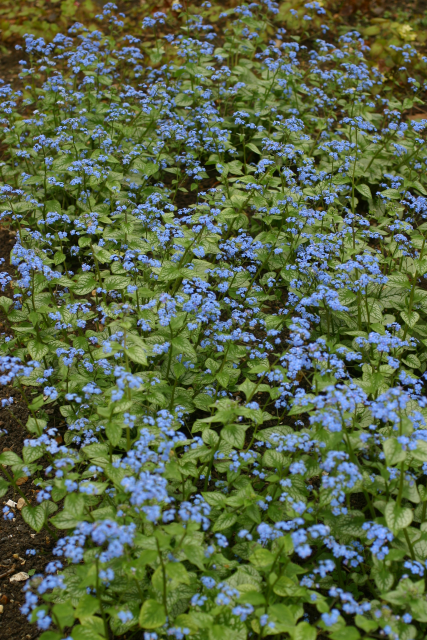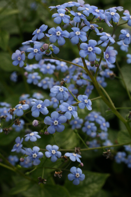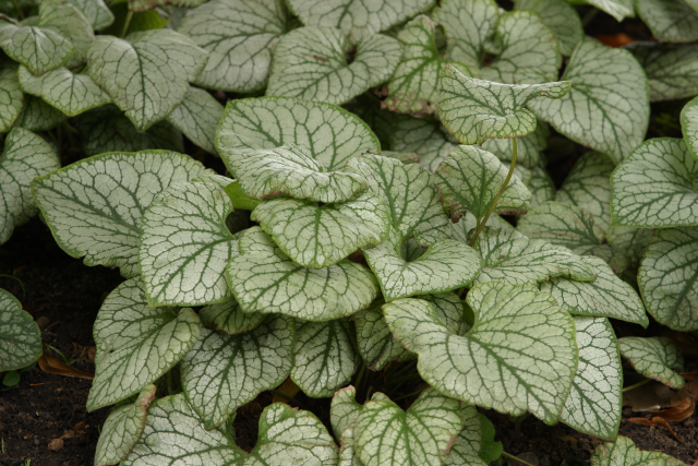 The Swiss botanist, Samuel Brunner, was a famous plant collector in the early 1800s who explored Crimea, the Caucasus, Siberia, Italy, and western Africa. He struck botanical gold when he discovered the now eponymous genus brunnera with its attractive, heart-shaped leaves and clusters of small, blue, forget-me-not-like flowers. The genus brunnera contains just 3 species and is very closely related to myosotis (Forget-me-not). Brunnera is popular in northern Europe and the northern US where it thrives in cool, consistently moist locations. (Plant Delights website)