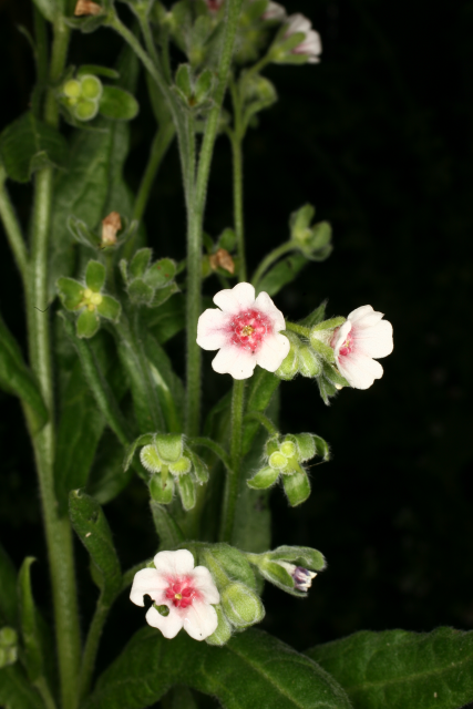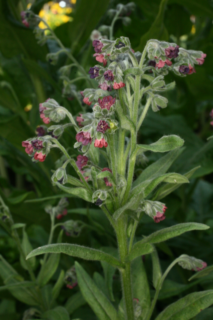 Cynoglossum officinale L. Boraginaceae. Houndstongue. Distribution: Europe. Culpeper (1650) writes: “... being roasted and laid to the fundament, helps the haemorrhoids. It is also good against burnings and scaldings.” It contains hepatocarcinogenic pyrrolizidine alkaloids and while people are known to eat the young leaves as a vegetable, this is inadvisable. The whole plant is hairy and may cause contact dermatitis. The use of herbal remedies, which contain these alkaloids, by the Bantu of southern Africa correlates with their high incidence of tumours of the liver and pancreas.