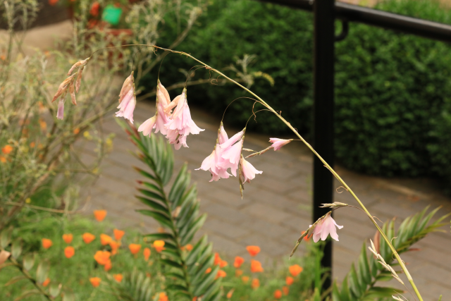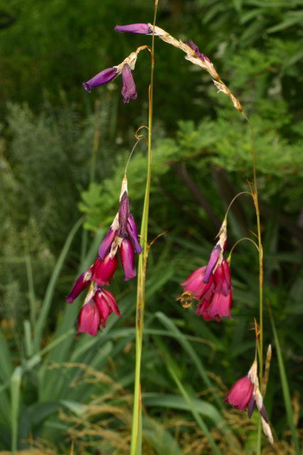 Dierama pulcherrimum (Baker, Iridaceae). Angel's Fishing rods, African harebell. Herbaceous perennial. Distribution: South Africa. Said to be used in South African Muthi medicine, but no references found other than it being grown at the Medicinal Garden of the University of Washington and the Royal College of Physicians, London.