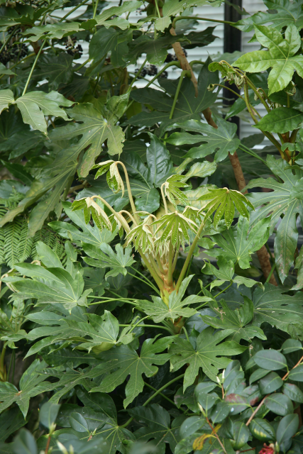 Fatsia japonica (Thunb.) Decne. & Planch. Araliaceae False castor oil plant. Distribution: Japan, South Korea. Not even in the same family as the castor oil plant, Ricinus communis. An ornamental plant, Fatsia from the Japanese word for 'eight' hachi referring to the eight-lobed leaf. The sap can cause dermatitis.
