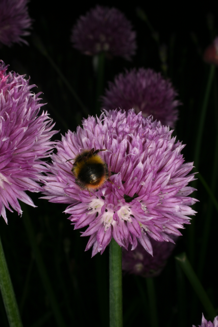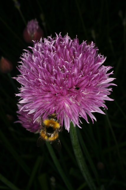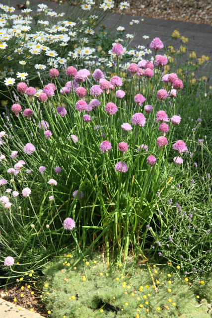 Allium schoenoprasum L. Alliaceae. Chives. Bulbour perennial herb. 'schoenoprasm' means 'rush leek' in Greek, referring to thenarrow leaves. Distribution: Asia, Europe and North America. Leaves used as a garnish on cooked food and in salads. However like the Boraginaceae it contains the pyrollozidine alkaloid cynoglossine which causes liver damage.