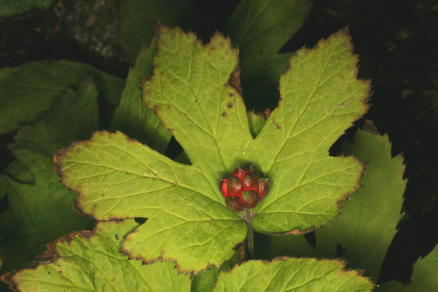 The root contains the alkaloids hydrastine, berberine and canadine. Berberine is antibacterial (effective against broad-spectrum bacteria and protozoa), it increases bile secretions, acts as an anticonvulsant, a mild sedative and lowers blood pressure. Use of this plant destroys beneficial intestinal organisms as well as pathogens, so it should only be prescribed for limited periods. The plant should be used with caution, and not at all during pregnancy or by people with high blood pressure. An infusion of the root is used externally as a wash for skin diseases, vaginal infections, gum diseases, etc.