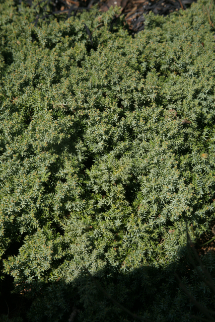 A hardy, coniferous, compact mat-forming evergreen, 20cm in height by 75cm in width, with dense, prickly, grey-green, awl-shaped leaves and small, globose fruits. Contact with the foliage may aggravate skin allergies.