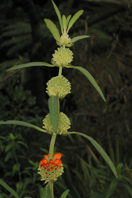 Leonotis leonurus contains a chemical constituent leonurine that has been reported to be used in traditional medicine for curing a wide range of ailments including headaches, coughs, fever, asthma, haemorrhoids and dysentery.