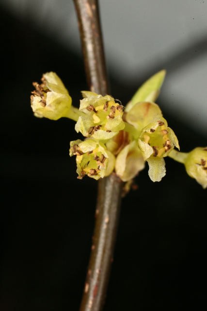 Lindera benzoin is known as Spicebush because it was used for flavouring strongtasting meats by the North American Cherokee and Ojibwa. Medicinally it was used for a wide variety of conditions, for which it is unlikely to have had any effect. The Cherokee used it for blood disorders (although it is impossible to know what was meant by this), female problems, colds, croup, measles and tuberculosis. The Mohegans used it to kill intestinal worms (Austin, 2004).