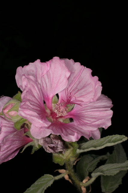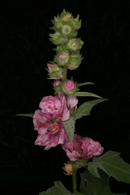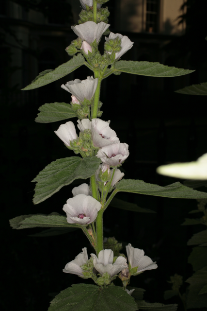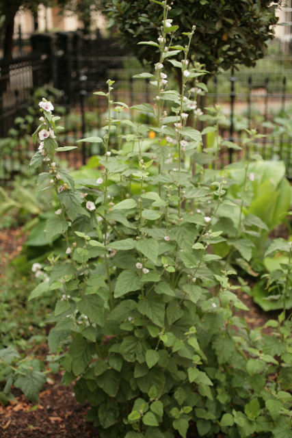 Althaea officinalis L. Malvaceae. Marsh Mallow. Herbaceous perennial. Althaea comes from the Greek word for healing; officinalis indicates that it was used in the 'offices' - the clinics - of the monks in medieval times. Distribution: Africa. The mucilage from the roots was made into confectionary called marshmallow, but no longer. It is now made of sugars, corn syrup and gelatin with various flavourings. Dioscorides (Beck, 2003) recommends it for injuries, parotid tumours, scrofula, mastitis, uterine disorders, urinary porblems, painful hips, dysentery, shakes, ruptures, toothache, vitiligo, dysentery, haemoptysis, bites and burns.