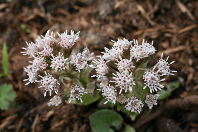 Petasites paradoxus Baumg. Asteraceae Alpine Butterbur. Herbaceous Perennial. Distribution: Temperate Northern hemisphere. It contains pyrrolizidine alkaloids, which are hepatotoxic and cause liver cancers.